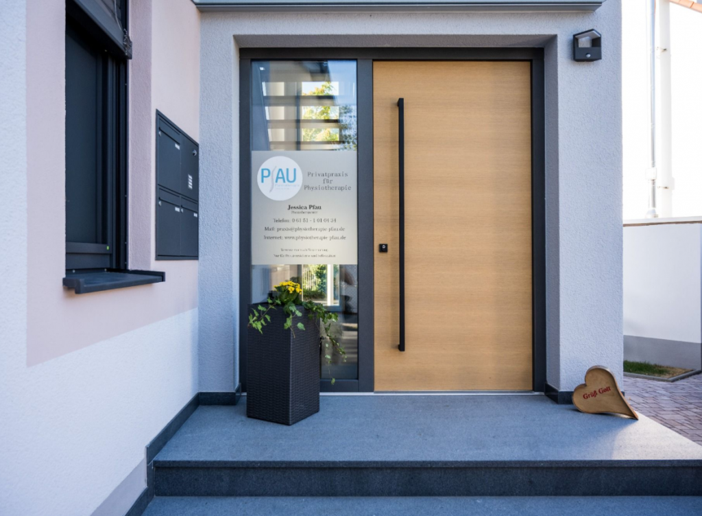 Der Eingang zur Praxisgemeinschaft Pfau / Möbus befindet sich im Griesheimer Weg. In der Schwanenstraße auf der Rückseite der Praxis befindet sich ein Patientenparkplatz.